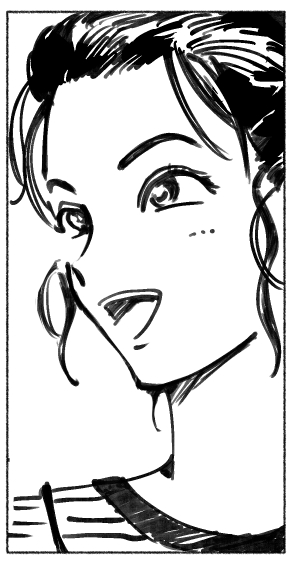 かわいい小芸をかわいく描くことに神経を注いでいた。鳥山明の描く女の子とか、ドキンちゃんみたいな、かまぼこ型の目の女の子が大好き。夏夏もちょっとそんな雰囲気がある。しっかりめの眉も好き。後毛の表現が難しい。#鯨 #原稿