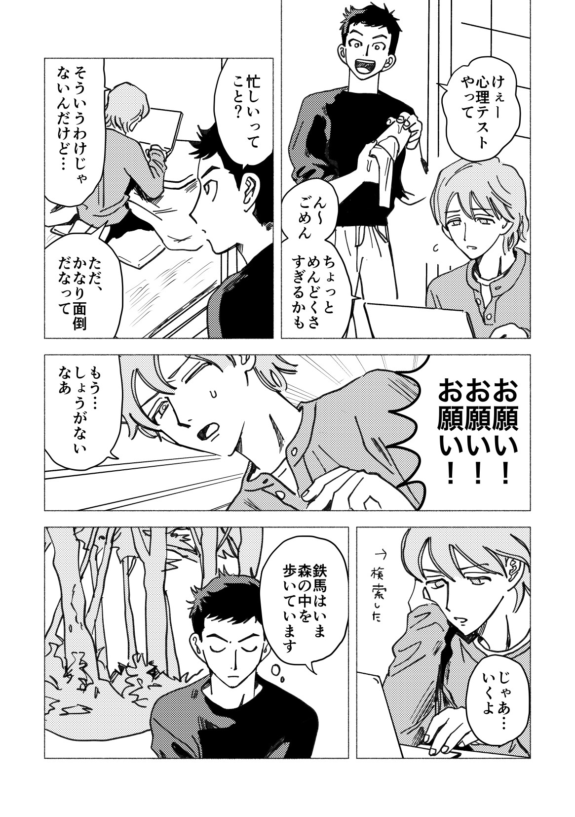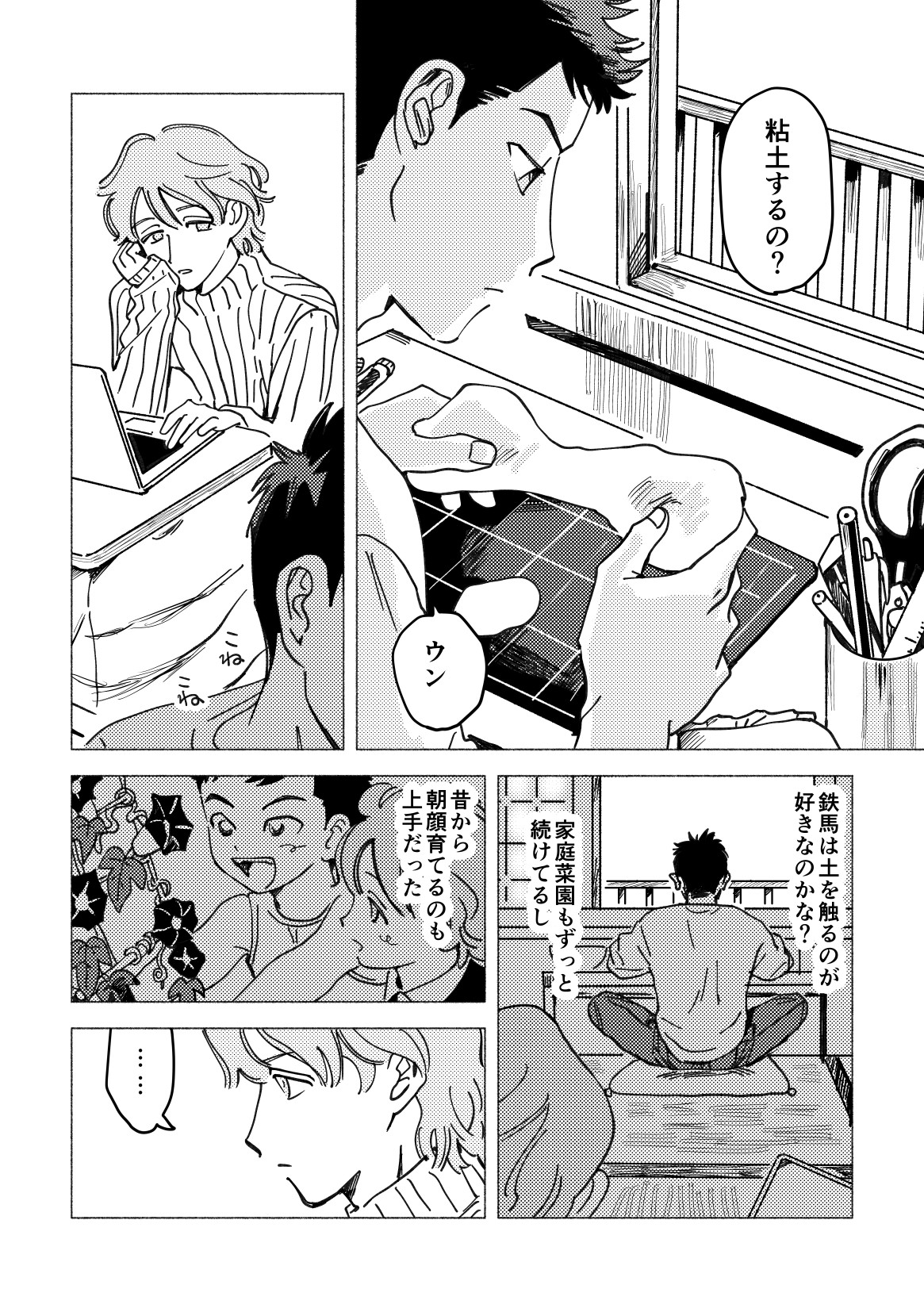 いま描いてるやつ、接触はそんなないんだけど精神的にいちゃついてるシーンがあり、何回も描き直してるうちに、なんで?って思ってきた。なんでこんなに好きあっている…何故…